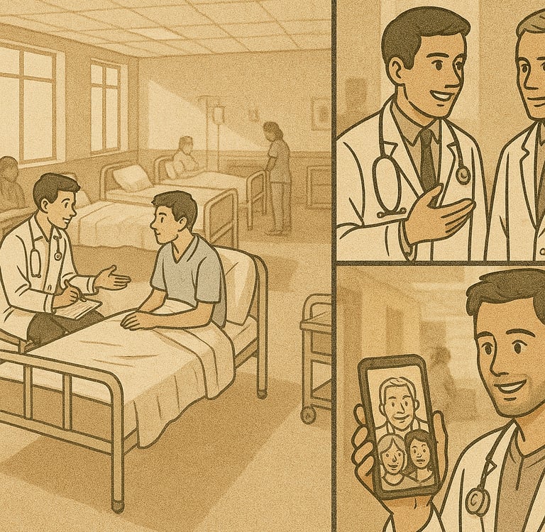 Once upon a time in the bustling corridors of a medical college hospital, four friends — Aisha, Rohan, Meera, and Vikram — began their first clinical posting. One morning, a worried mother brought her child with severe abdominal pain. The senior scolded the group for confusion in presenting the case. Rohan felt hurt, Meera tried to defend, and Aisha quietly stepped forward, calming both the mother and the team. She gently explained the delay, assured the mother, and helped Vikram re‑examine the child.